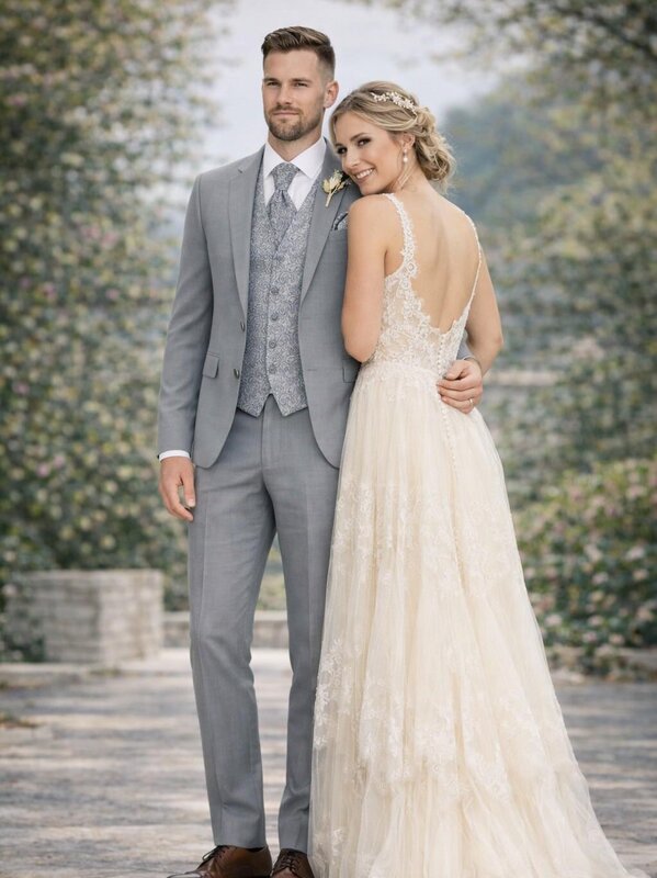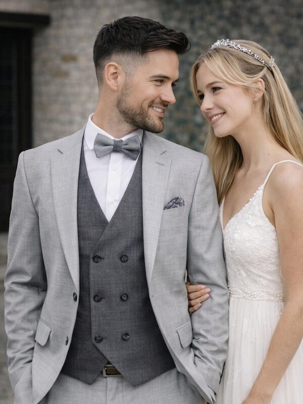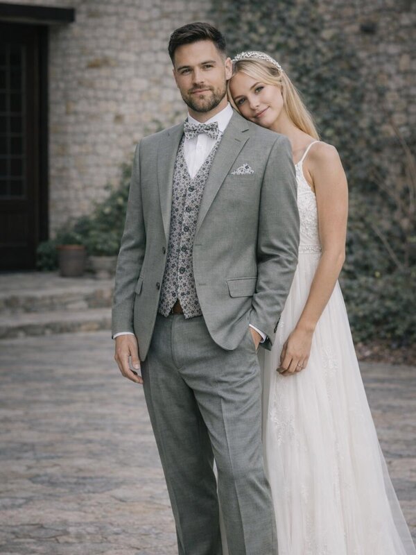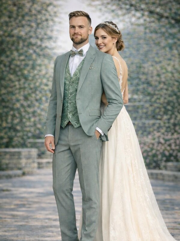 Nachdem die Dame ihr Kleid bei Hochzeitsambiente sunflower gefunden hat, können wir nun auch den Mann passend dazu beraten. Bei der Wahl des Bräutigamanzuges kommt es darauf an, dass der Anzug den persönlichen Stil des Mannes unterstreicht..Unsere Hochzeitsanzüge können mit einer Fülle fein abgestimmter Accessoires wie Hemden, Westen und Schuhen angeboten werden. Hier kann der Mann aus Westen, Fliegen, Hosenträger, Manschettenknöpfen und Krawatten selbst auswählen. Egal ob der Anzug klassisch, sportlich oder einen Hauch von Vintage haben soll, Hochzeitsambiente sunflower bietet euch gern verschiedene Stile an. Wir sorgen für das perfekte Outfit des Bräutigams, denn unsere jahrelange Erfahrung ist ein Garant für deine Traumhochzeit.