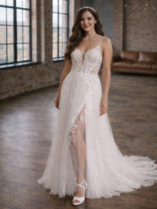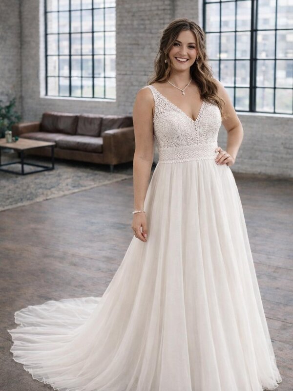 Du fühlst dich in deinem Körper pudelwohl und wünschst dir ein Brautkleid, was deine femininen Kurven gut betont? Dann könnte der schmale Schnitt von Fit and Flair möglicherweise dein Stil sein.